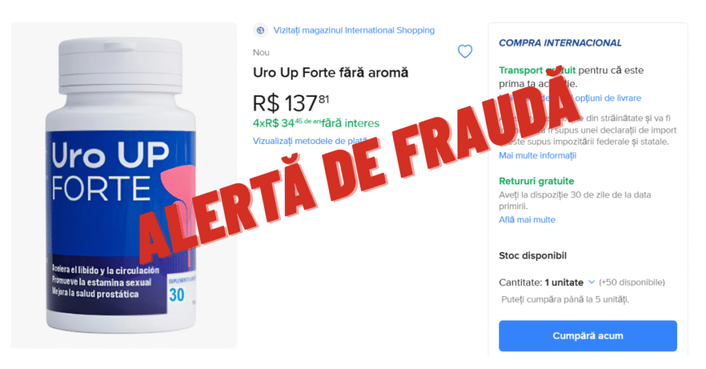 Din nefericire, multe persoane cad victime ale înșelătoriilor atunci când cumpără suplimentul Uro Up Forte deoarece nu folosesc site-ul oficial. Unii aleg să comande Uro Up Forte pe Amazon pentru că pare mai ieftin; cu toate acestea, ei cumpără de fapt sticle contrafăcute.